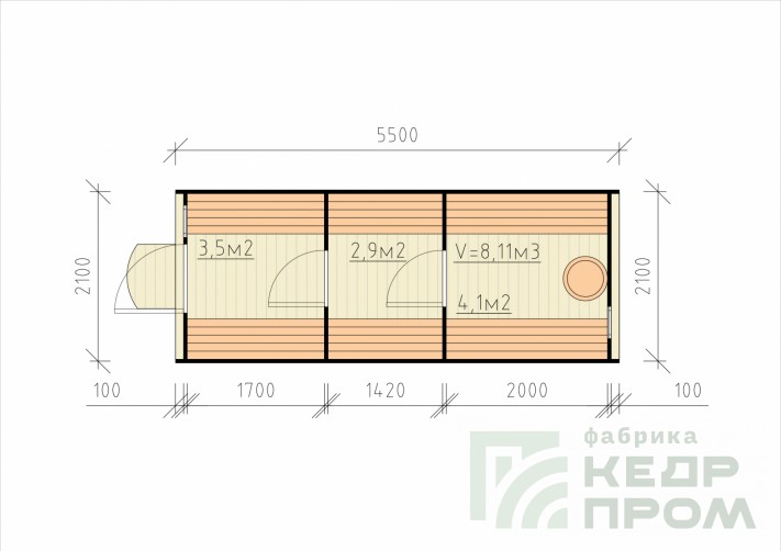 Баня-бочка из кедра 5.5м №283