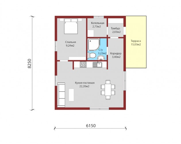 • Ширина 6.15 м